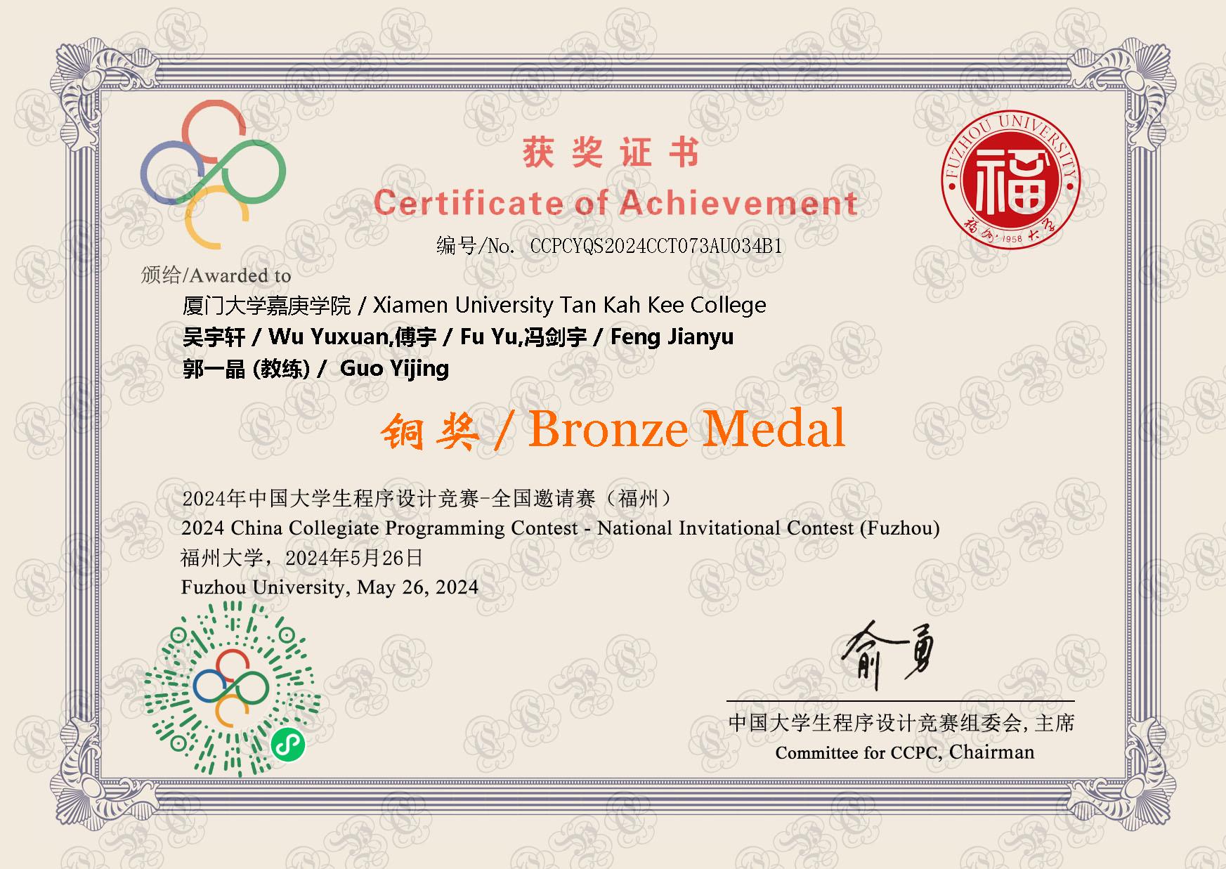 2024年 - 福州邀请赛 铜奖🥉