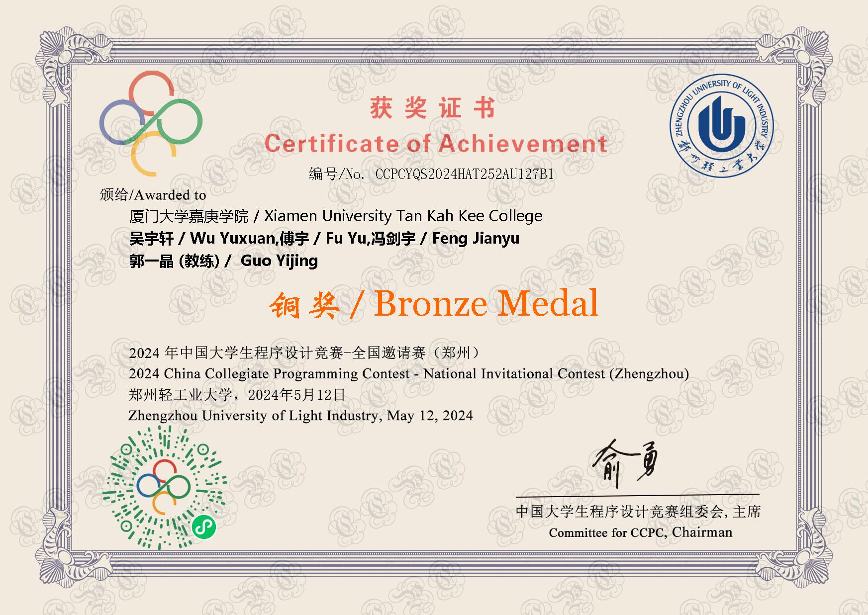 2024年 - 郑州邀请赛 铜奖🥉