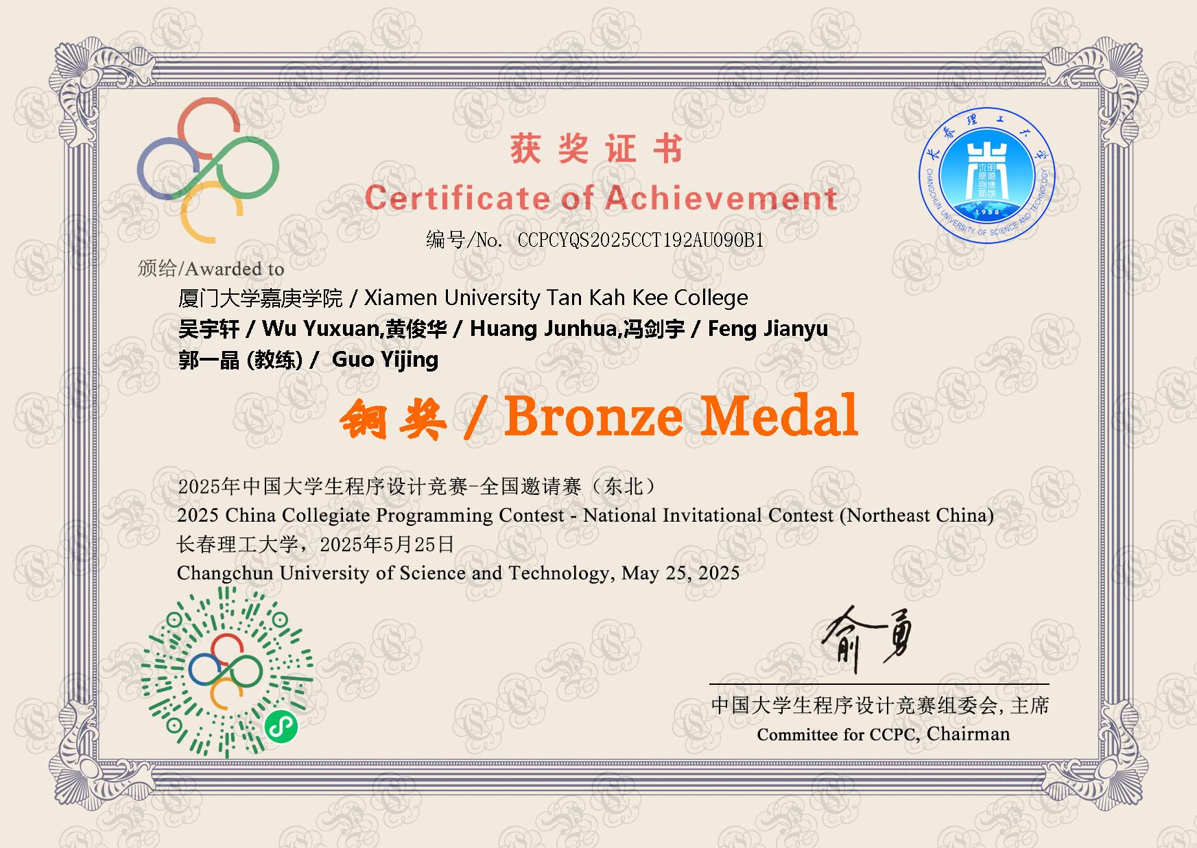 2025年 - 东北邀请赛 铜奖🥉